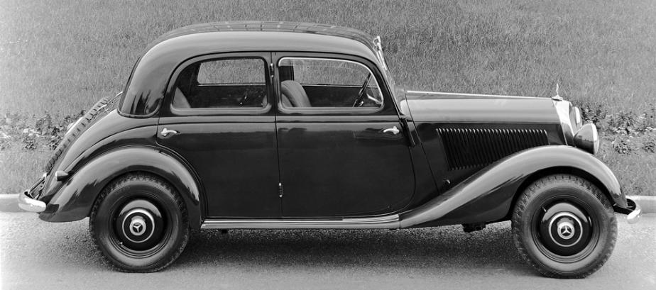 Afoi Dougias första firmabil var denna Mercedes 170 i svart som kördes av Dimitrios.