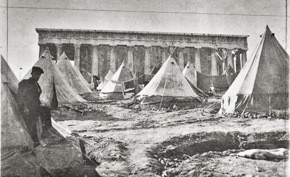 Familjen Dougias fick egen tält på flyktningläger vid Thision templet i Aten.